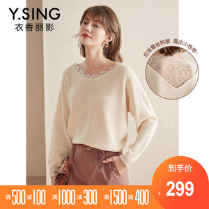 衣香丽影2019秋装新款韩版时尚蕾丝拼接V领针织衫女士小心机上衣