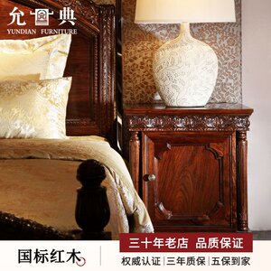 允典红木家具花梨木刺猬紫檀达芬奇09卧室欧式雕花1.8米床三件套