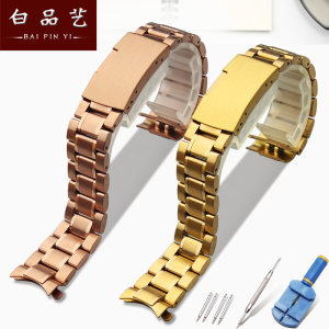 白品艺实心不锈钢表链适配精工西铁城李维斯化石上海折叠扣手表带