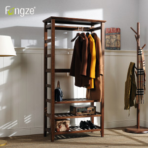 直销Fengze实木挂衣架落地衣帽架简约家用收纳卧室置物储物衣架CS