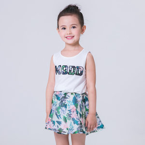 米奇丁当童装女童上衣裙子两件套夏季学院风儿童T恤半身裙花套装