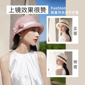 tlove遮阳帽子女士新款时尚草帽优雅太阳帽女洋气礼帽防晒帽夏季