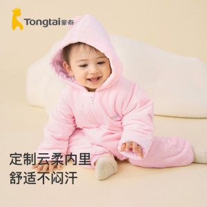 童泰婴儿连体衣夹棉冬季新生宝宝棉衣服保暖加厚哈衣爬服外出抱衣