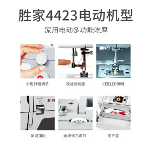胜家4423电动缝纫机家用多功能吃厚型新手台式脚踏家庭衣车锁边