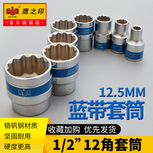 鹰之印1/2"12.5mm12角梅花蓝带套筒短套筒头子汽车维修工具8-32mm