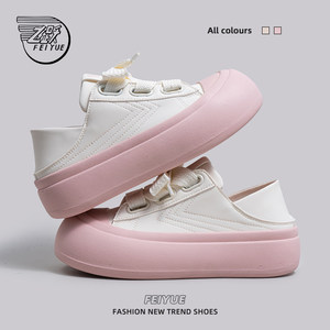 飞跃小白鞋女2024春夏季新款百搭懒人一脚蹬板鞋两穿包头半拖鞋子