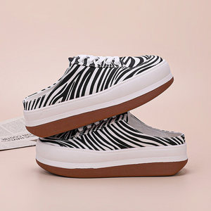 feiyue/飞跃溶解底豹纹半拖帆布鞋女2024春季新款一脚蹬休闲鞋子