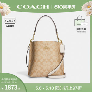 COACH/蔻驰官方 奥莱款女士MOLLIE老花配皮斜挎手提包水桶包CA582