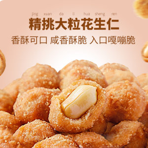 【华味亨_蒜香/咸干花生系列】五香红皮花生米带壳零食炒货干果