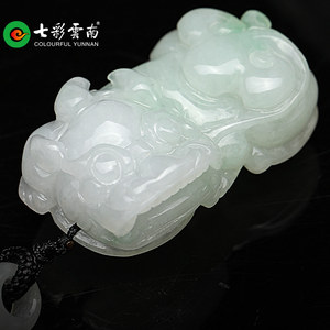 七彩云南翡翠霸王貔貅飘花冰糯种玉吊坠翡翠玉挂件送女友爱人礼物