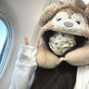 HelloKitty连帽U型枕迪士尼雪莉玫凯蒂猫午睡护颈枕飞机出差旅行