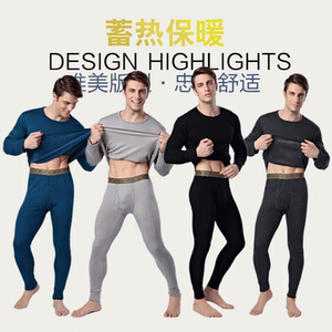 男士纯棉保暖内衣加绒加厚套装修身圆领全棉青年秋衣秋裤冬季ck0