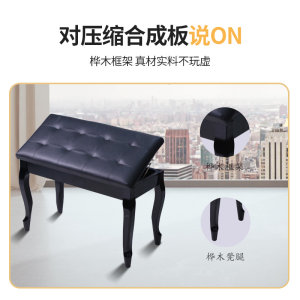 雅马哈卡西欧通用实木双人弯腿带书箱钢琴凳电钢琴凳古筝凳钢琴椅