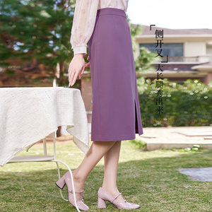 香影高腰紫色半身裙女2024春季新款法式高级感中长开叉西装a字裙
