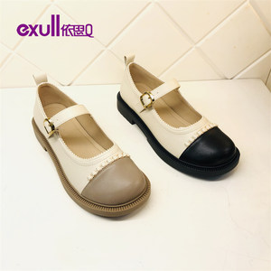 依思q玛丽珍小皮鞋新款2022年平底百搭鞋浅口撞色jk单鞋12151001