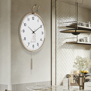 康巴丝北欧鹿头挂钟家用电波钟表简约装饰轻奢网红挂表客厅石英钟