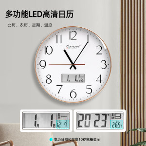 康巴丝钟表挂钟客厅家用时尚卧室新款挂表日历电子时钟轻奢电波钟