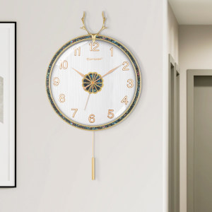 康巴丝轻奢鹿头挂钟客厅家用摇摆钟表简约装饰北欧挂表网红石英钟