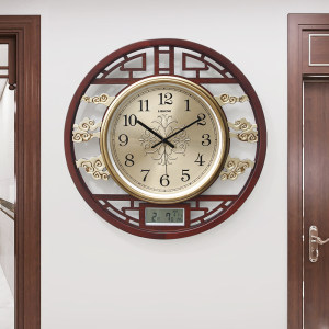 丽盛新中式实木挂钟静音客厅装饰家用时钟大气万年历挂表石英钟表