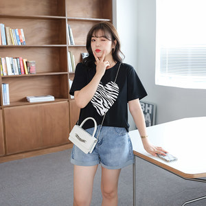 蓝若水大码女装爱心图案短袖T恤胖mm夏装韩版遮肉巨显瘦减龄上衣