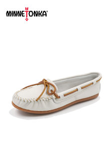 MINNETONKA迷你唐卡流苏纯色豆豆鞋女鞋 浅口蝴蝶系带平底单鞋女
