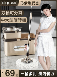 爱格旋转拖把可拆卸通用拖布墩布桶家用拖地桶自动甩水懒人免手洗