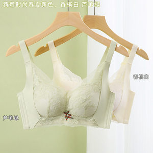 雪妮芳无钢圈蕾丝内衣女小胸聚拢调整型收副乳上薄下厚文胸防下滑