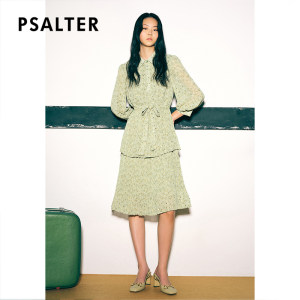 诗篇女装2022夏季新款宽松翻领系带小清新碎花雪纺衬衫裙连衣裙