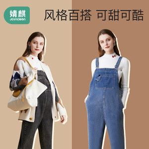 婧麒孕妇裤子春秋款外穿牛仔背带裤秋冬小个子2023新款孕妇装春装