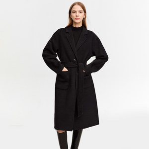 Amii极简全羊毛毛呢外套女2023冬季新款长款大衣可拆卸腰带双面呢