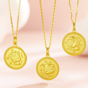 千叶珠宝黄金足金吊坠十二生肖项链双面挂坠龙生肖送福颈饰计价YS
