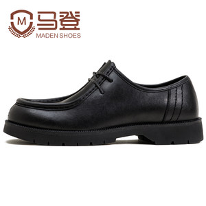 马登德比鞋男厚底增高黑色圆头英伦风高级感大头休闲低帮马丁皮鞋