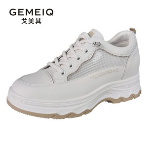 戈美其女鞋2024春季新款厚底内增高休闲运动鞋子女真皮百搭小白鞋