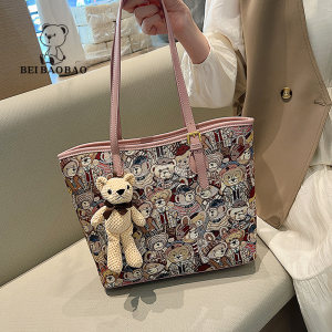 北包包2024早春新款帆布小熊包原创提花单肩包可爱托特包手提袋