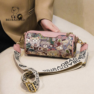 北包包原创小熊包包女2024新款圆筒包小众帆布包斜挎休闲单肩小包