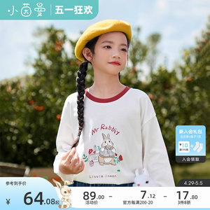 茵曼女童卡通兔子长袖T恤23春新款撞色圆领套头纯棉上衣儿童女宝