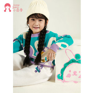 茵曼女童长裤冬季新年衣童装女裤子兔子卡通休闲裤儿童双面加绒裤