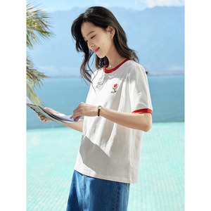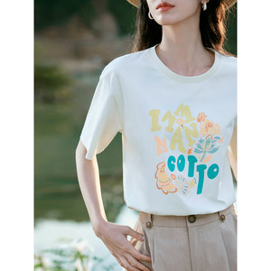 茵曼旗舰店官方短袖T恤女士夏季宽松上衣漂亮新款2024小衫纯棉