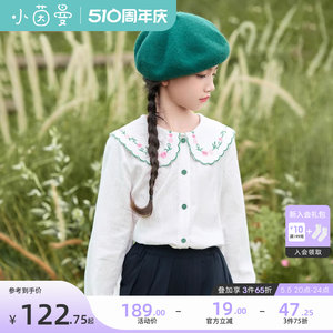 茵曼童装女童花朵娃娃领白衬衫春季儿童中大童洋气长袖衬衣学院风