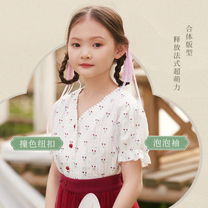 【茵曼童装奥莱】小樱桃短袖衬衫2024夏季新款甜美儿童衬衣亲子装