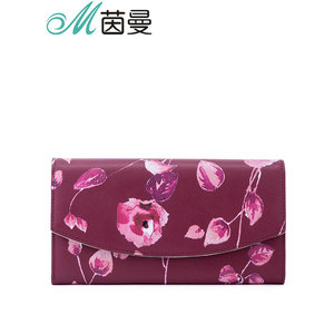 茵曼新品牛皮大钞钱包女士长款三折多卡位折叠卡包6881040024