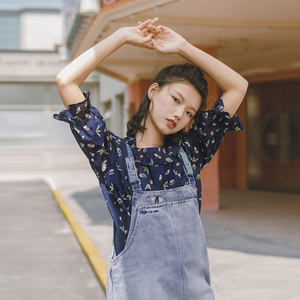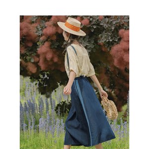 茵曼旗舰店2020春装新款棉麻女装牛仔背带套装两件套连衣裙小个子