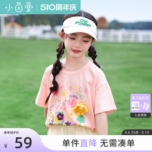 茵曼童装女童5A级抗菌纯棉t恤2024夏新款儿童中大童立体印花短袖