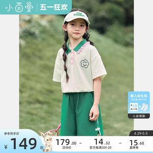 茵曼童装2024夏装洋气套装新款撞色领口短袖运动服女中大童两件套