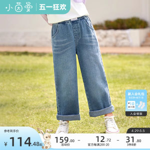 茵曼童装直筒牛仔裤女童2024春装新款休闲时尚简约长款裤儿童长裤