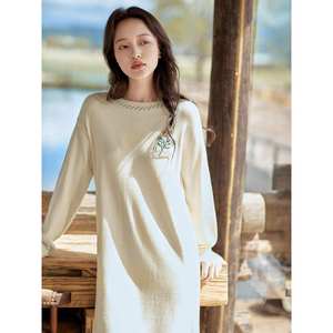 茵曼休闲毛织连衣裙女2023年秋冬新款宽松圆领垂感直筒针织长裙子