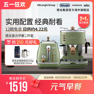 Delonghi/德龙复古系列半自动咖啡机+烤面包机/多士炉家用2件套