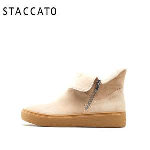 思加图冬季新款加绒雪地靴厚底拉链羊绒皮女中皮靴子9J935DZ9
