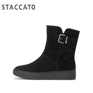 思加图冬季黑色厚底时尚拉链加绒雪地靴女短靴子9J925DD8