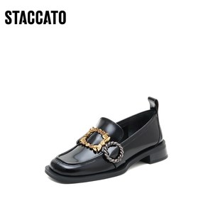 思加图新款英伦风方头乐福鞋粗跟单鞋休闲女小皮鞋EBX20AA2